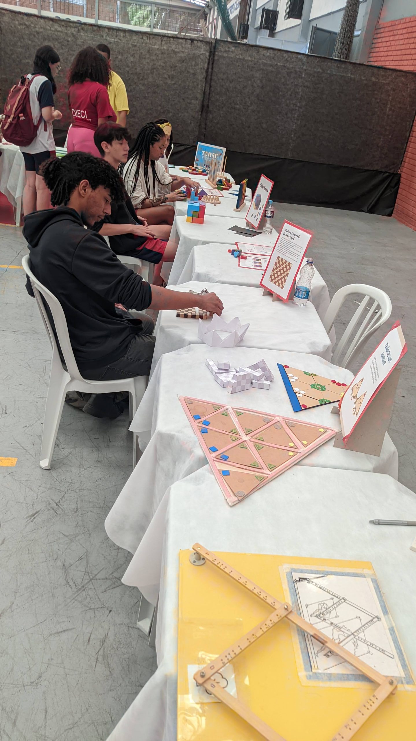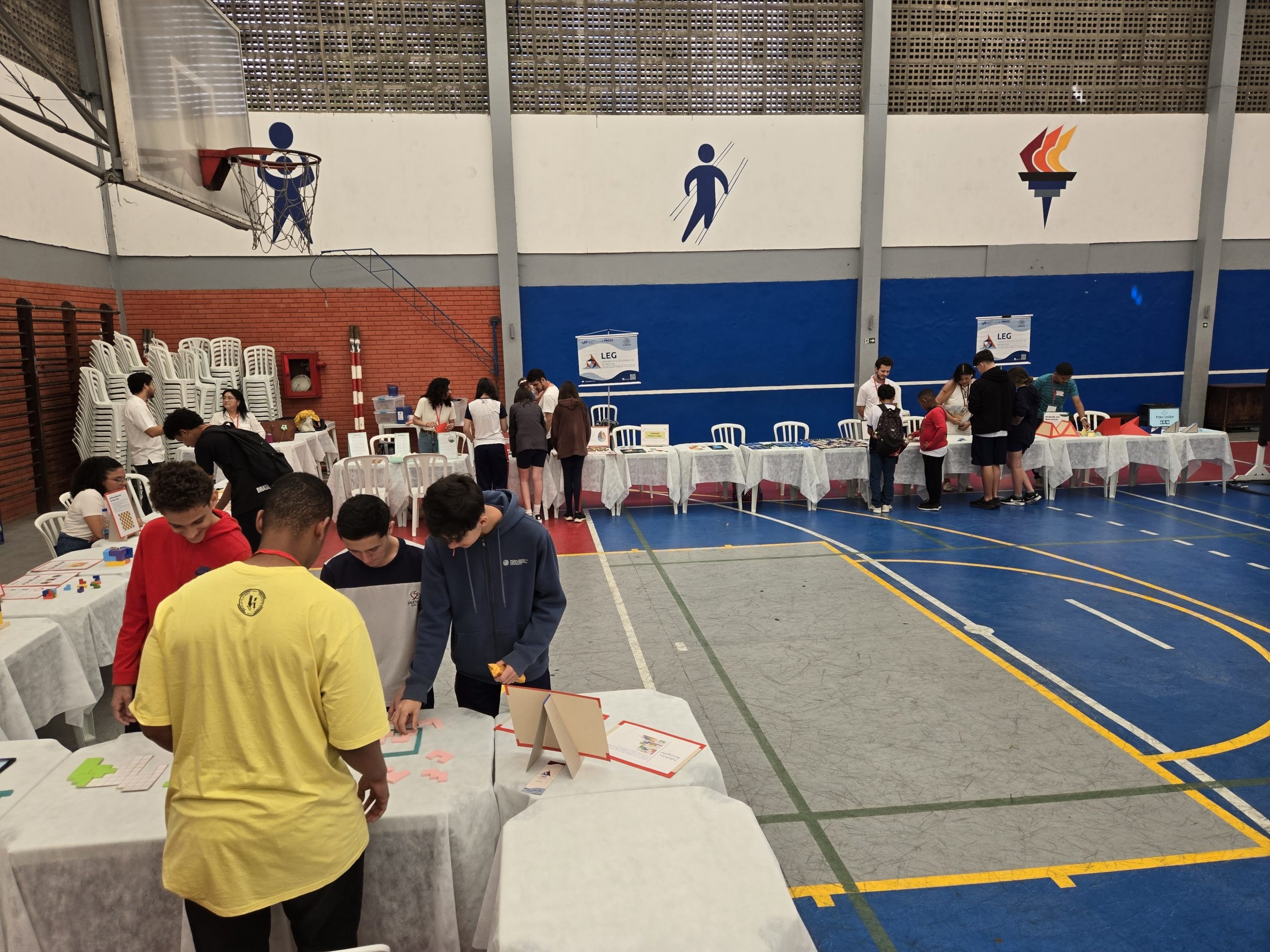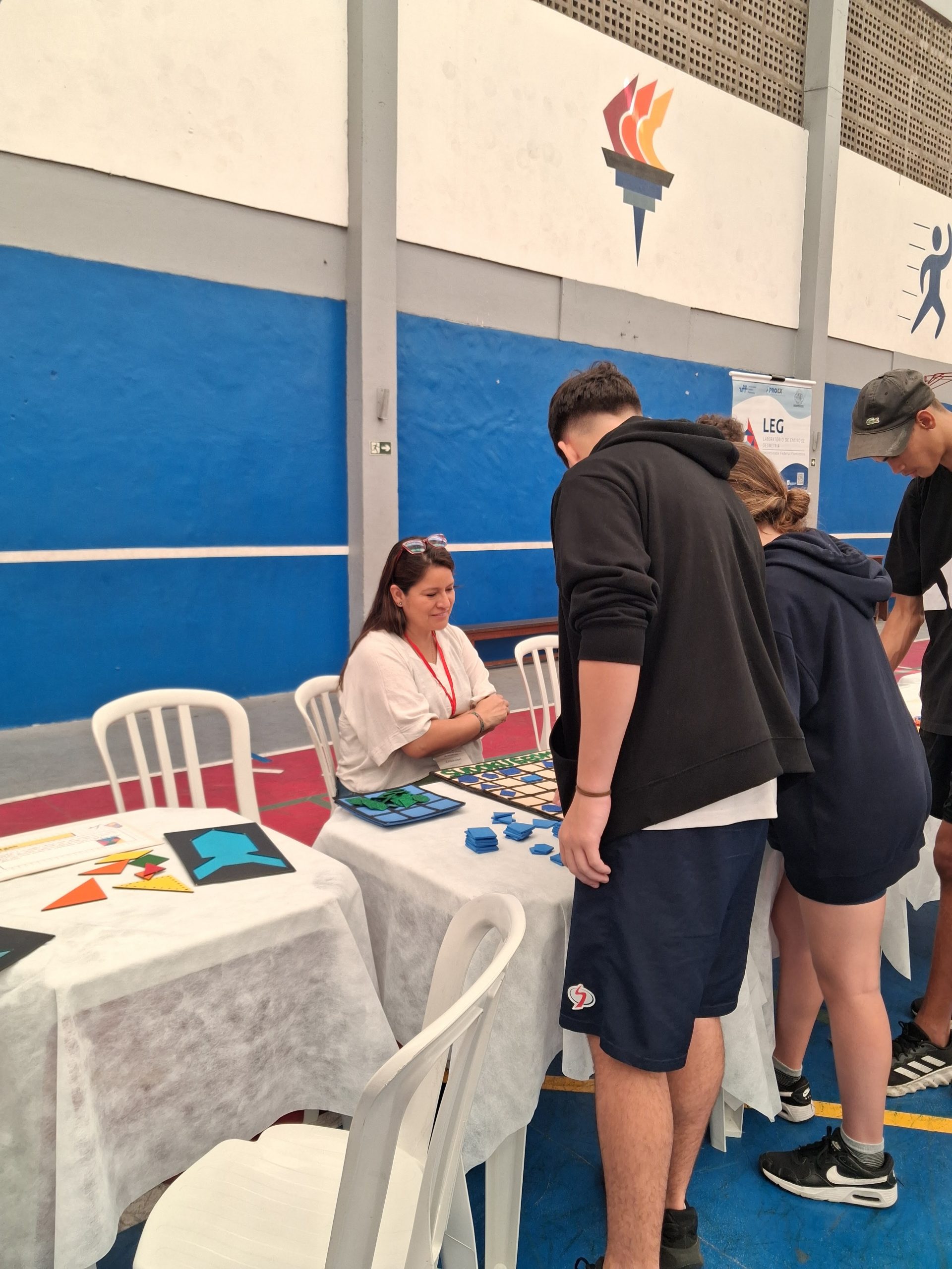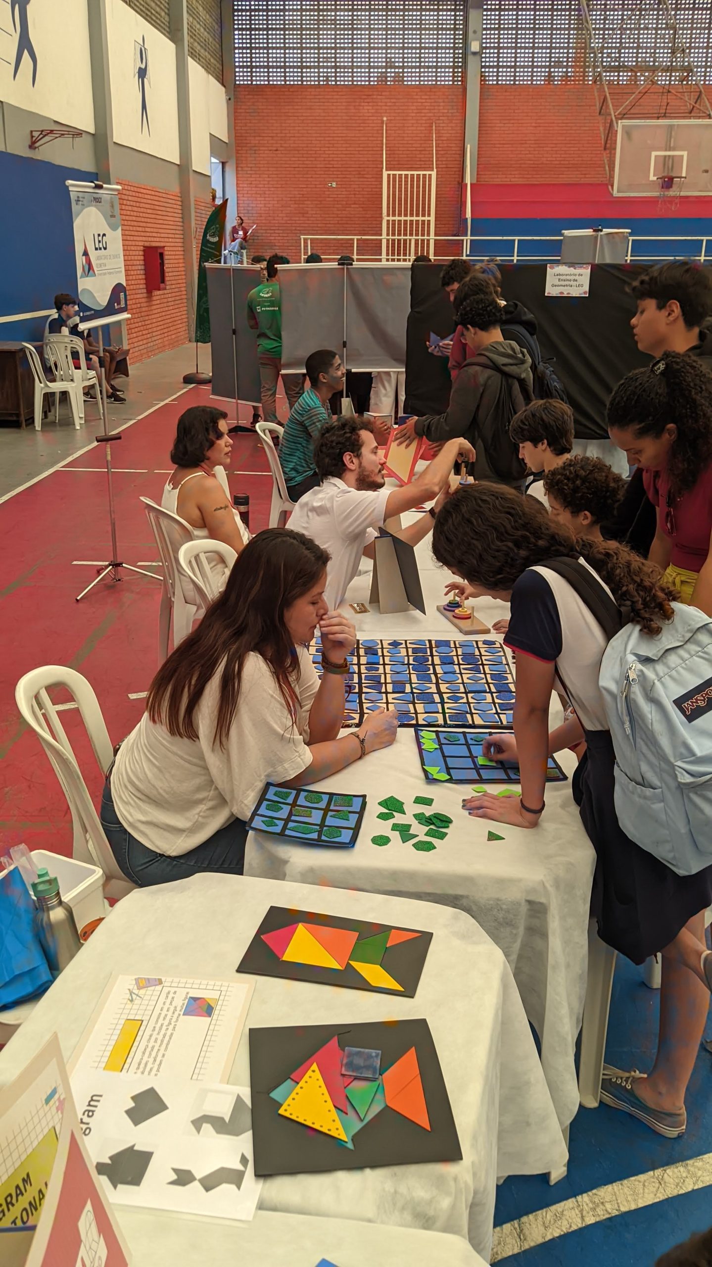 O LEG participou com exposições lúdicas de vários materiais, como jogos, tangrans, artefatos geométricos, entre outros.