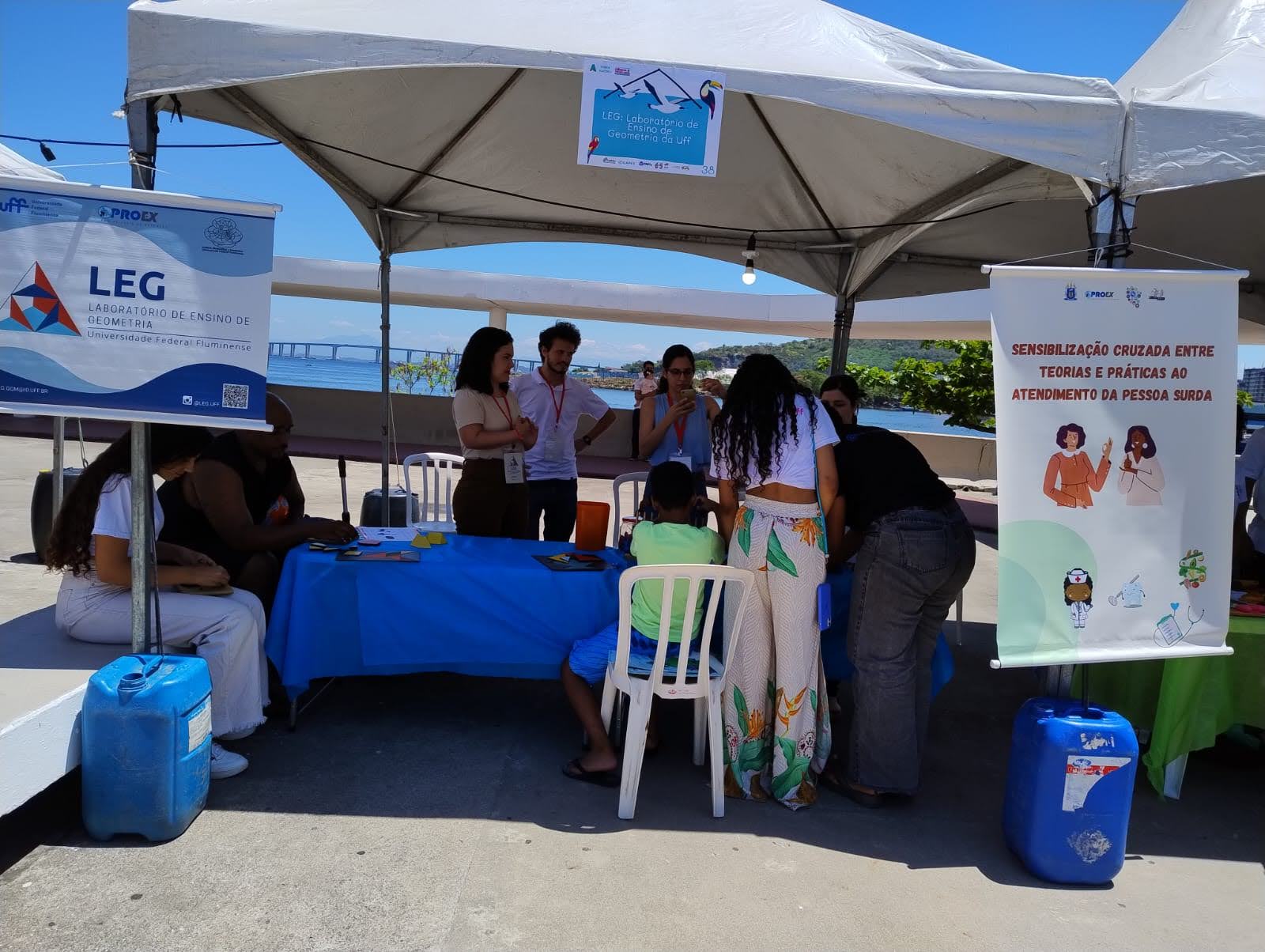 No dia 25 de outubro foi realizado, na Praça Juscelino Kubitschek, no Centro de Niterói, o evento “UFF nas Praças”, com aproximadamente 50 tendas destinadas à apresentação de projetos da universidade. O LEG contou com uma tenda, onde fizemos a exposição, apresentando diversos materiais, como o cubo soma, o tangram e o triângulos amigos.